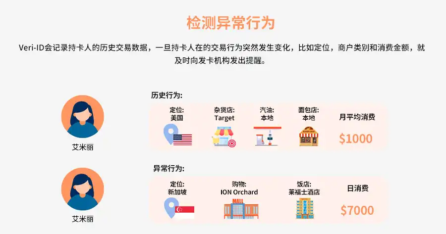 如果客户的历史数据显示有旅行用品购买记录,比如美国到新加坡的机票或预定新加坡当地酒店,那么发卡机构会认为该客户可能要去新加坡旅行,这一行为有一定合理性。